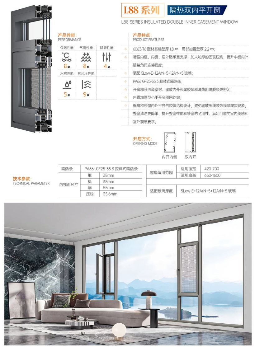 L88系列隔热双内平开窗
