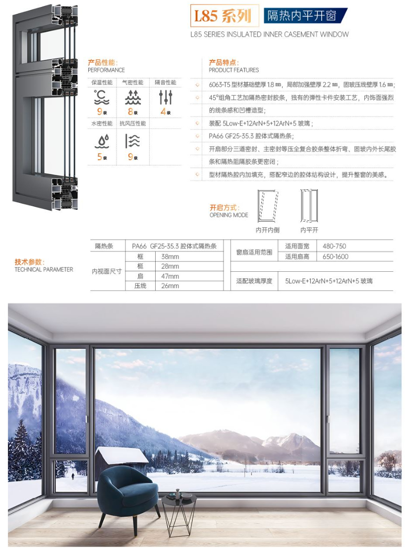 L85系列隔热内平开窗