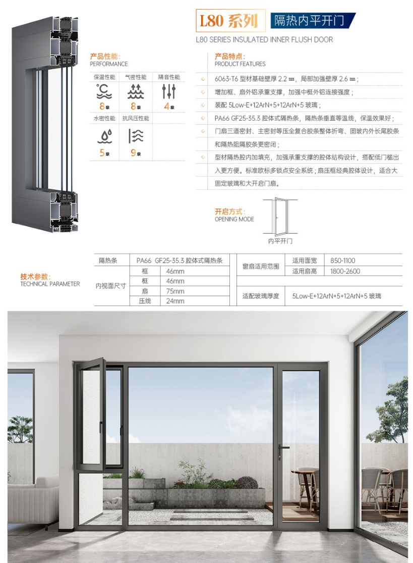 L80系列隔热内平开门