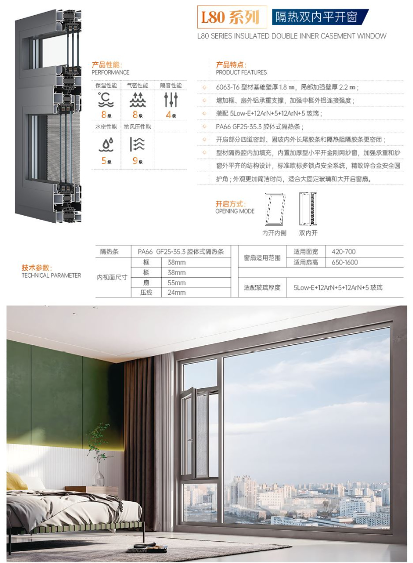 L80系列隔热双内平开窗