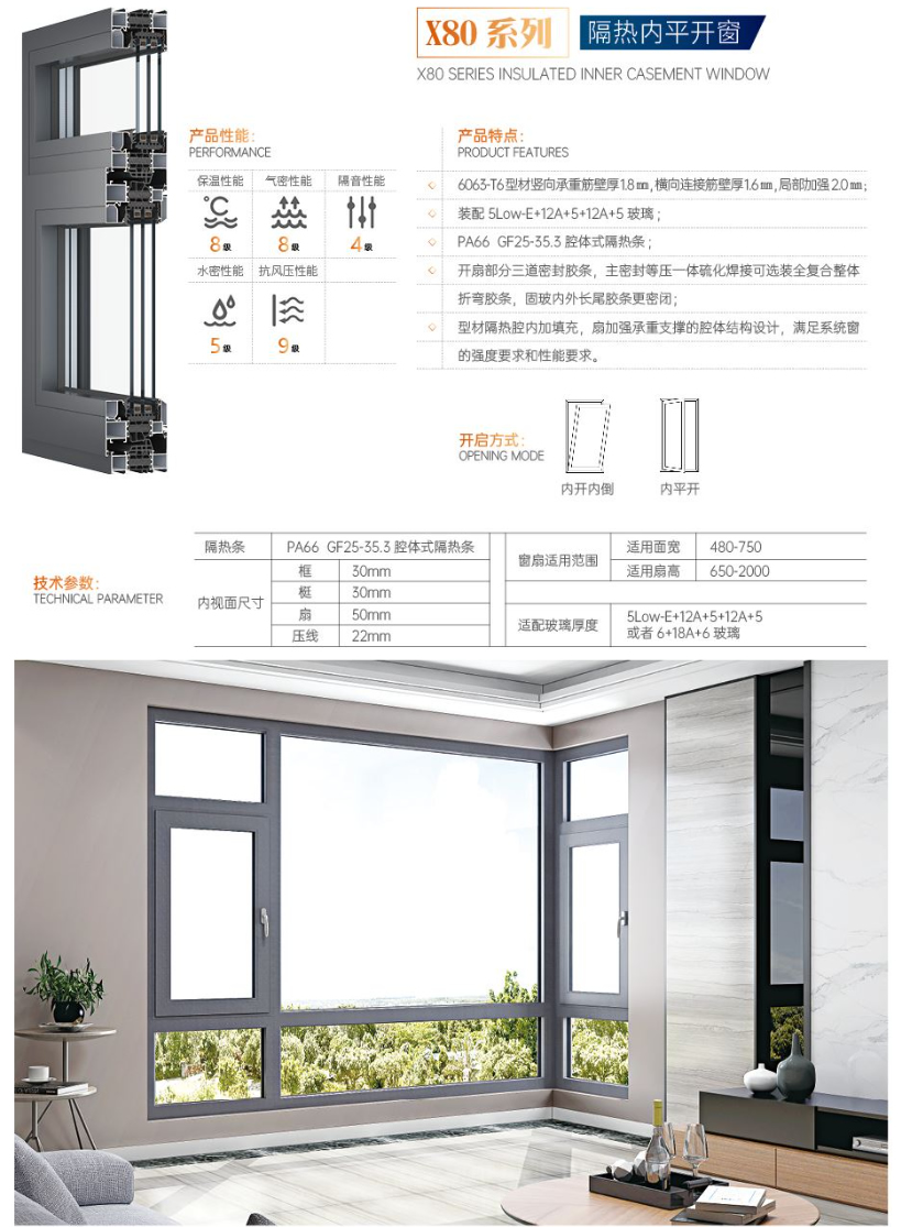 X80系列隔热内平开窗